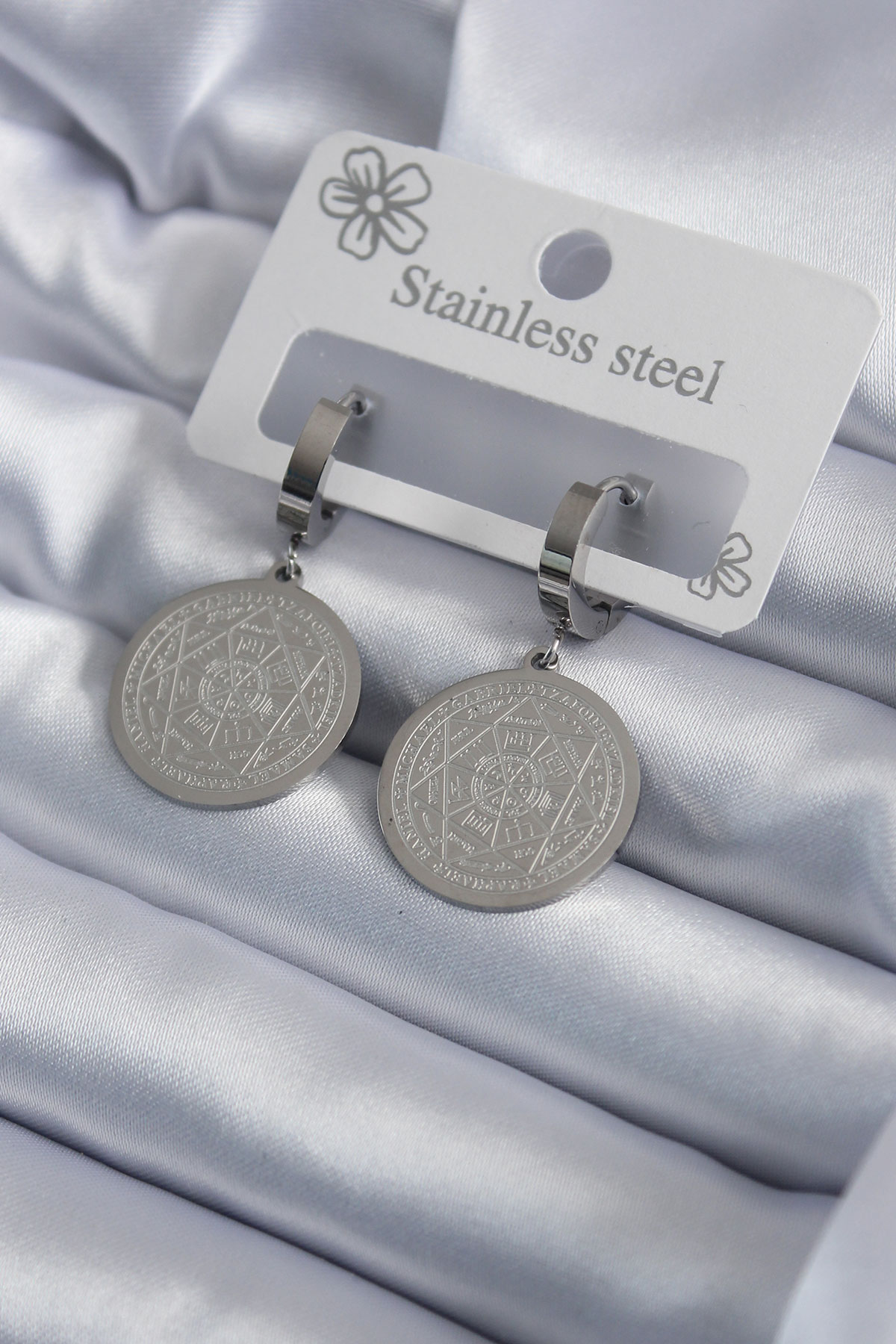 316L Çelik Gümüş Renk Pentagram Yıldızı İşleme Kadın Küpe - TJ-BKP7951