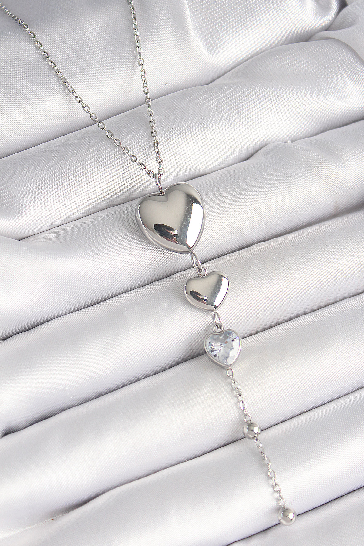 316L Çelik Gümüş Renk Sallantı Kalp Model Zirkon Taş Detay Kadın Kolye - TJ-BKO9933
