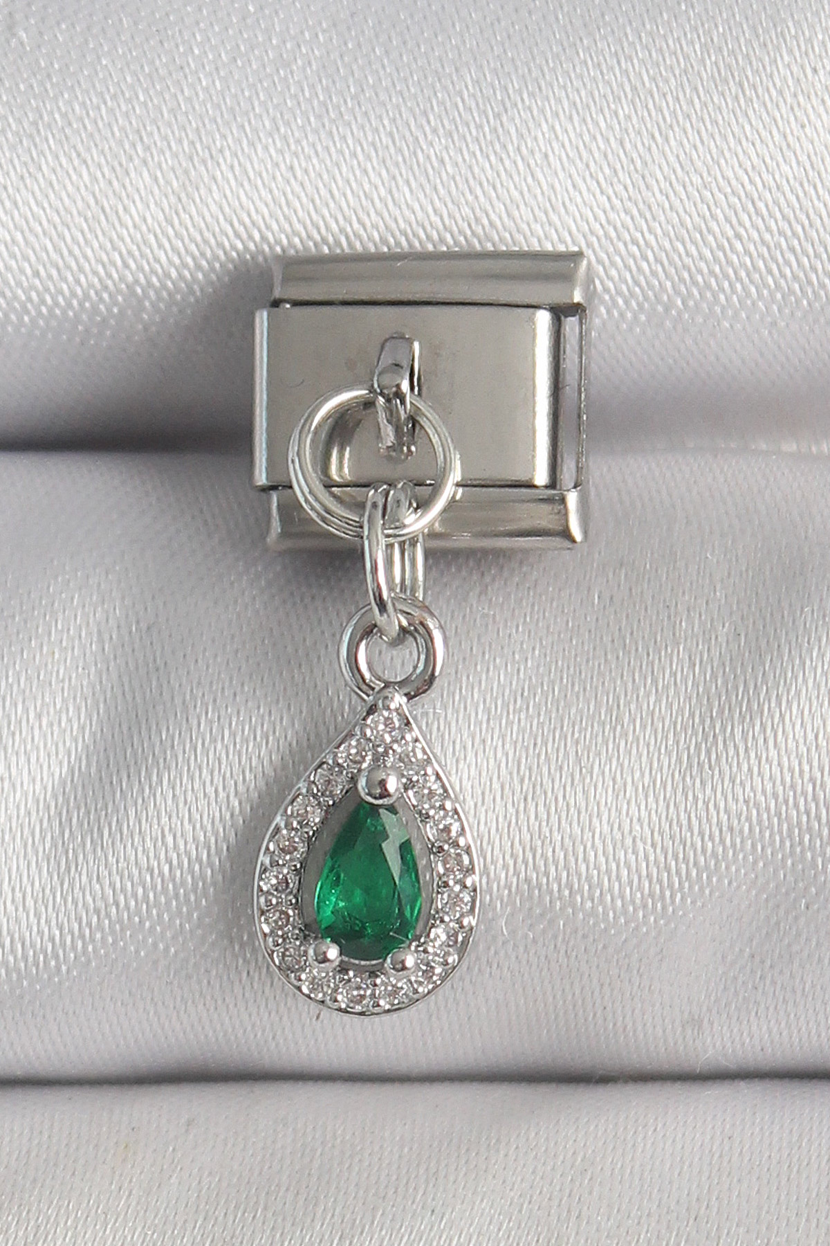 316L Çelik Gümüş Renk Sallantı Yeşil Zirkon Taşlı Damla Model Nomination Charm - TJ-BC1383
