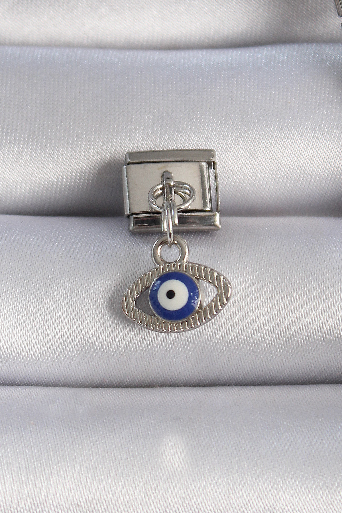 316L Çelik Gümüş Renk Sallantılı Göz Figür Nazar Boncuk Detay Nomination Charm - TJ-BC1044