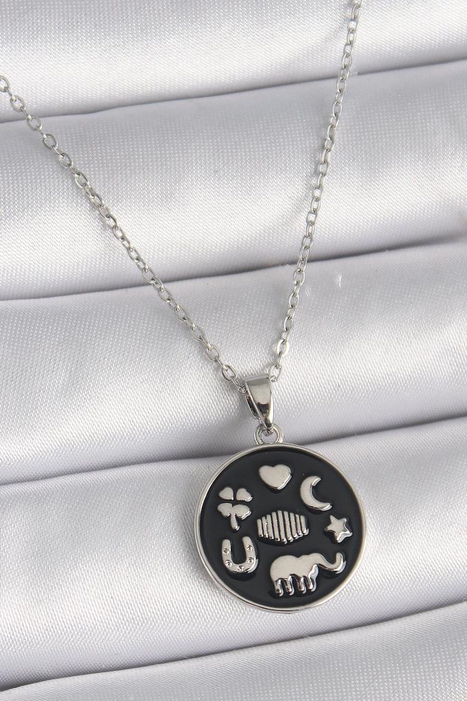 316L Çelik Gümüş Renk Siyah Renk Şans Kolyesi - TJ-BKO9546