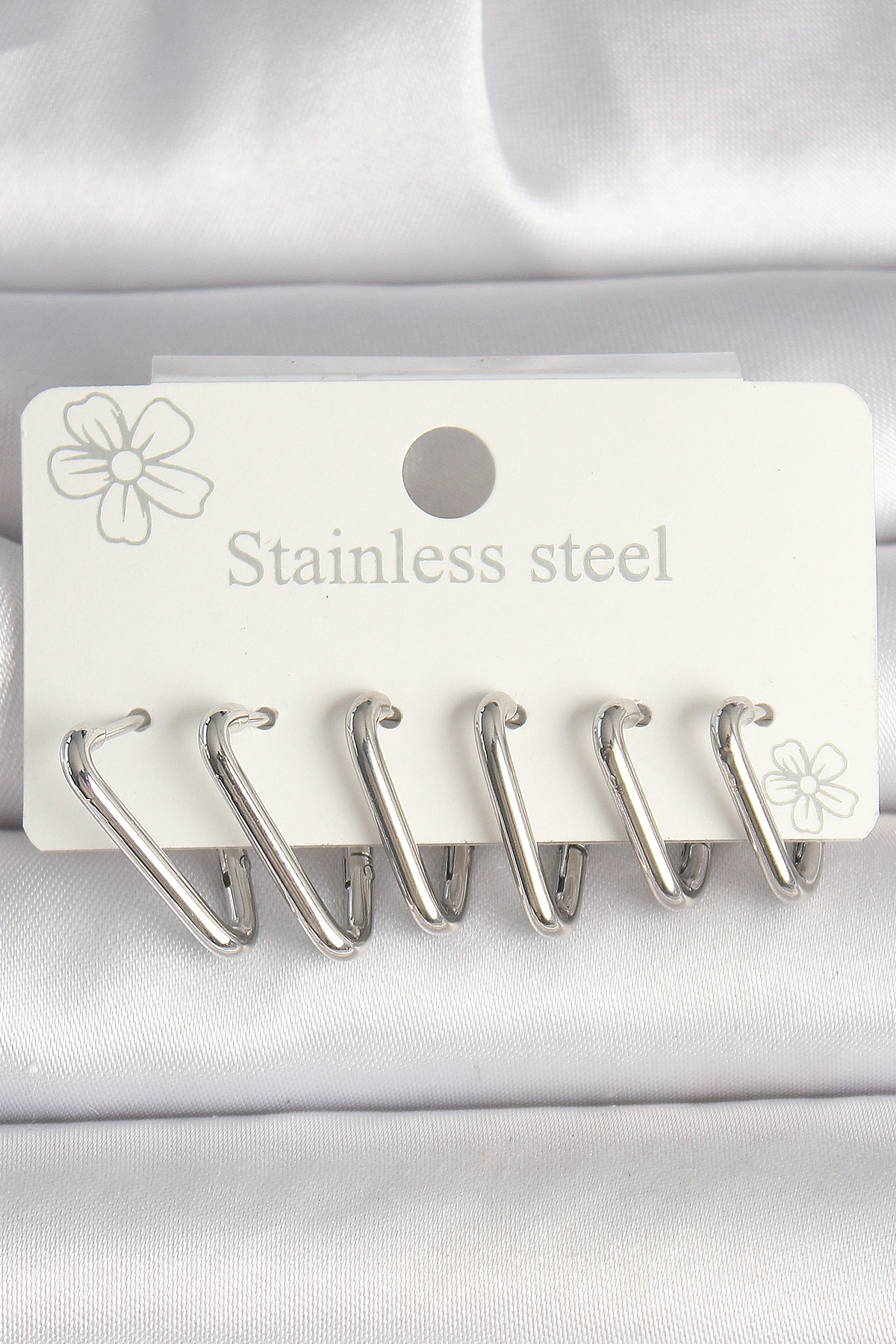 316L Çelik Gümüş Renk Üçgen Model Kadın Küpe Seti - TJ-BKP10349