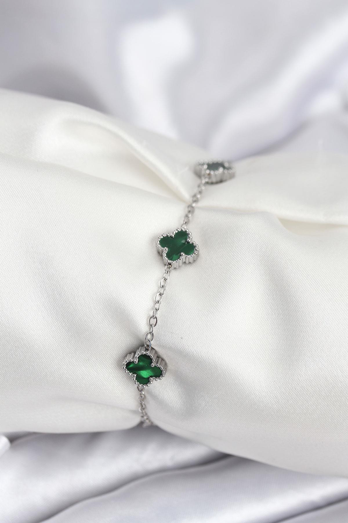 316L Çelik Gümüş Renk Yeşil Baby Boy Yonca Kadın Bileklik - TJ-BB7945