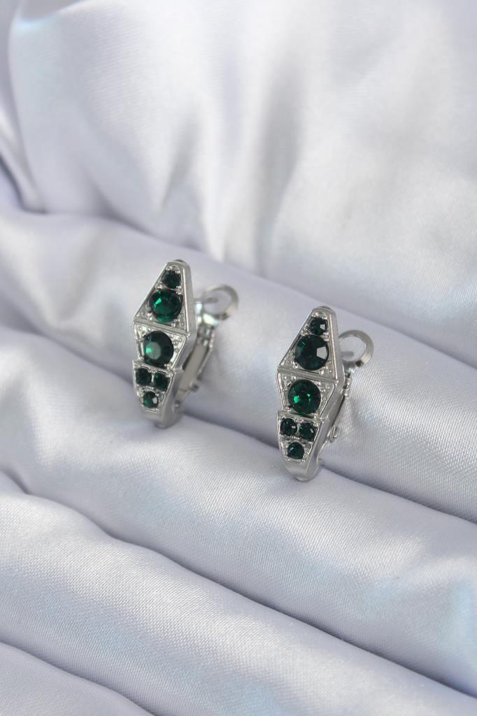 316L Çelik Gümüş Renk Yeşil Kristal Taş İşleme Yılan Model Kadın Küpe - TJ-BKP8066