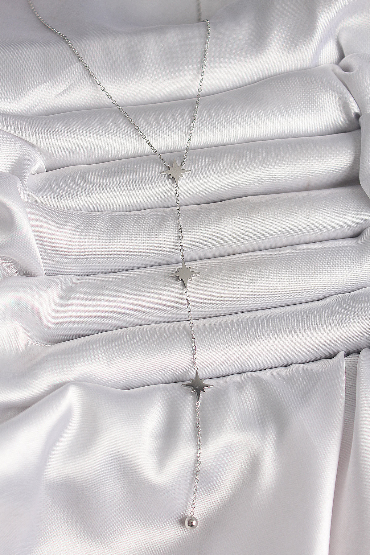 316L Çelik Gümüş Renk Yıldızlı Model Topçuk Detay Kadın Y Kolye - TJ-BKO10010