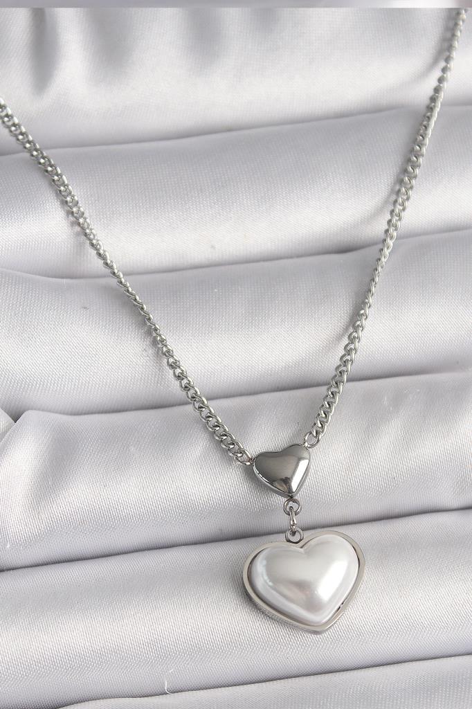 316L Çelik Gümüş Renk Zincir 3D Kalp Model Kadın Kolye - TJ-BKO9771