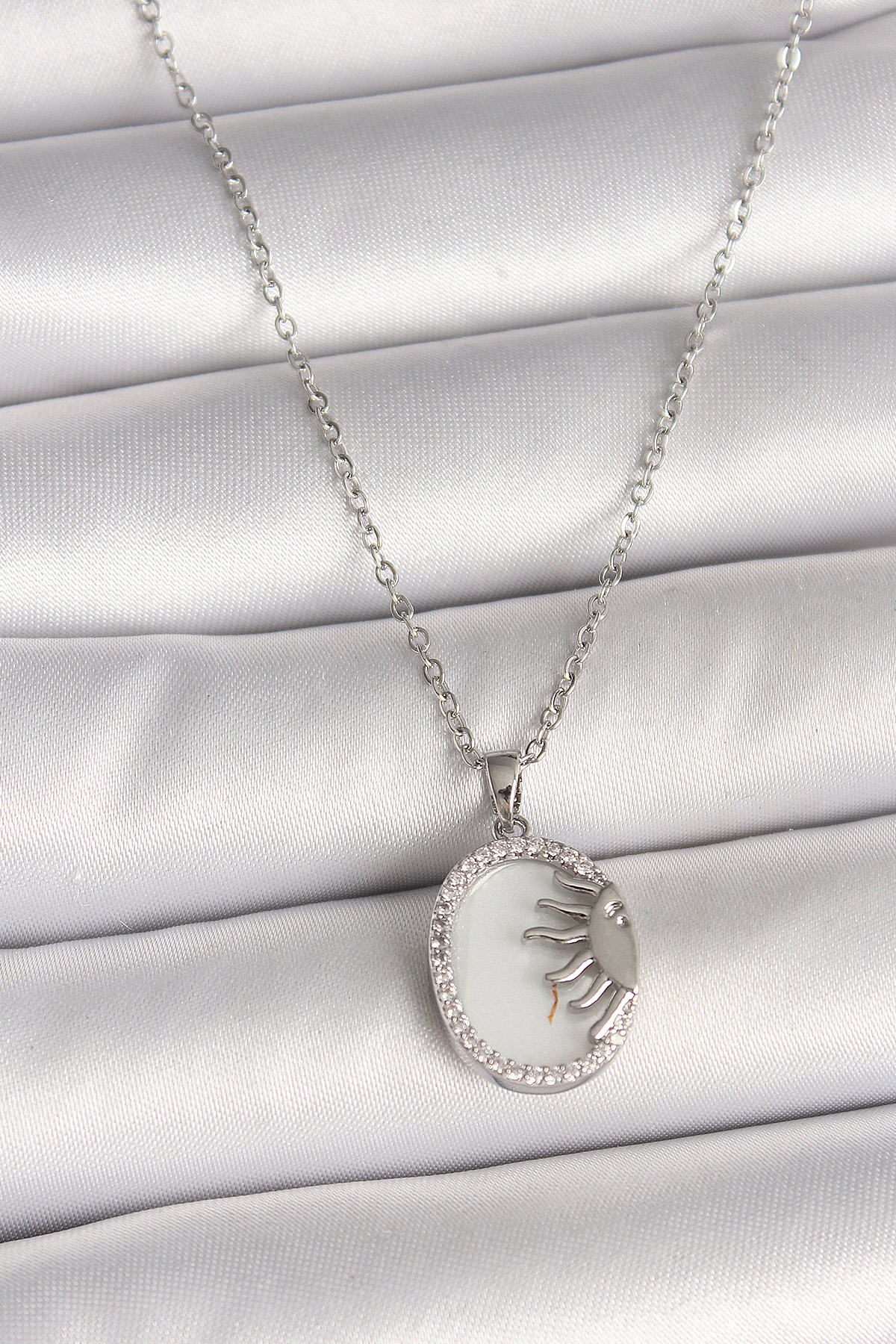 316L Çelik Gümüş Renk Zincir Beyaz Mineli Gün Batımı Model Zirkon Taş Detaylı Kadın Kolye - TJ-BKO10003