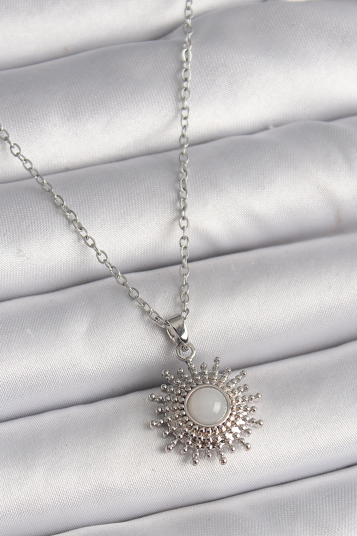316L Çelik Gümüş Renk Zincir Beyaz Mineli Güneş Model Kadın Kolye - TJ-BKO9719