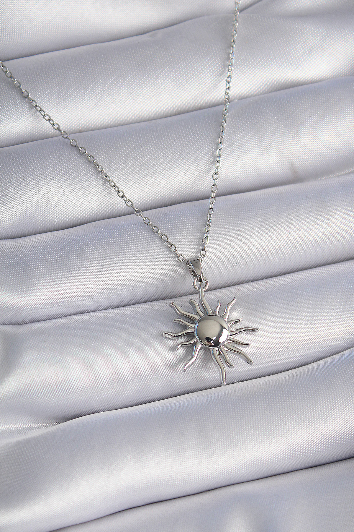 316L Çelik Gümüş Renk Zincir Güneş Figür Kadın Kolye - TJ-BKO9431