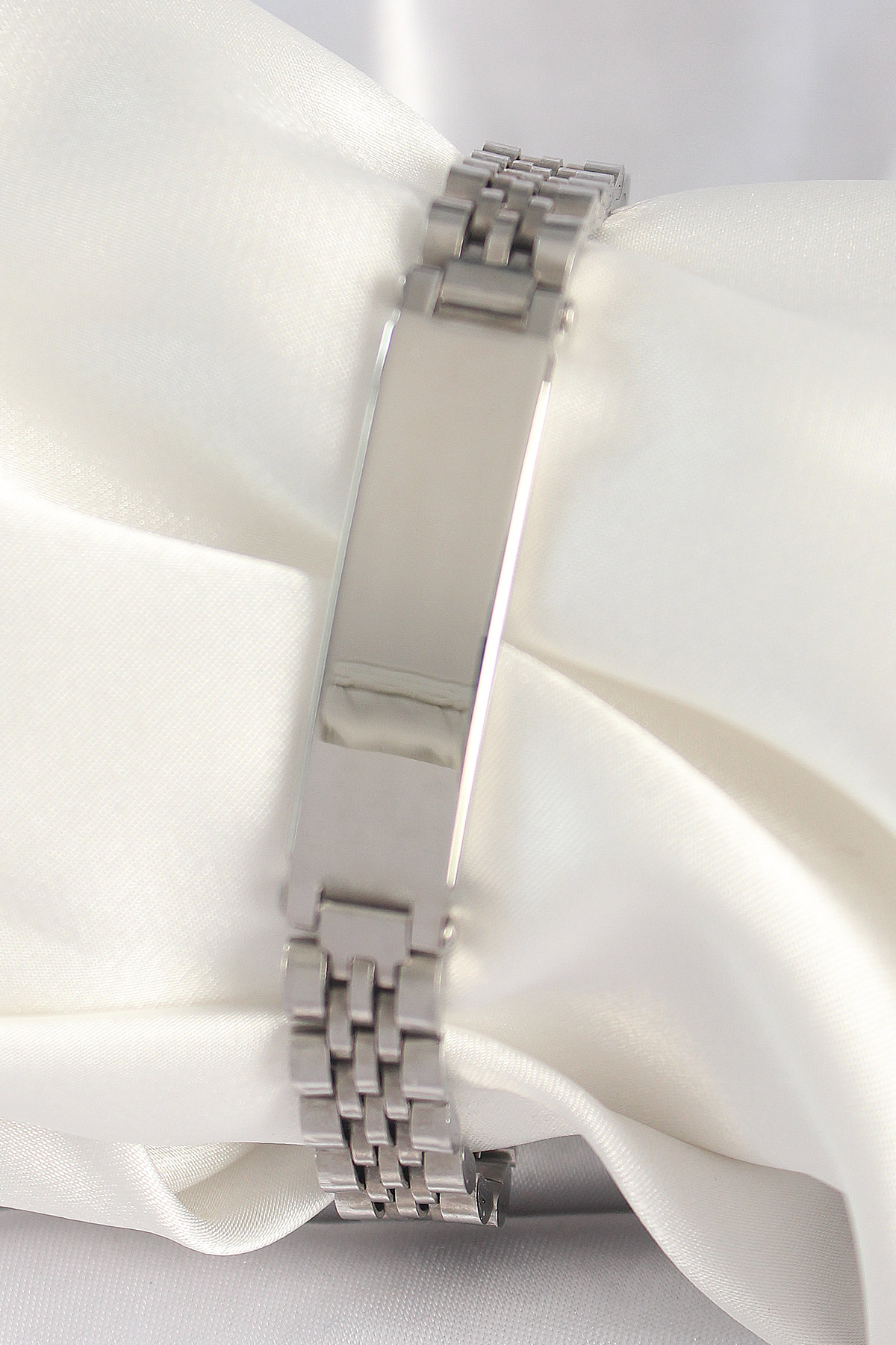 316L Çelik Gümüş Renk Zincir Künye Model Erkek Bileklik - TJ-EB3718