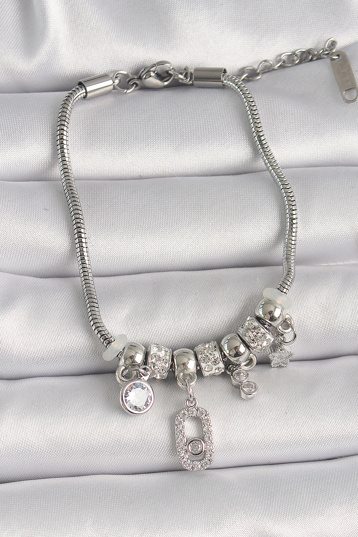 316L Çelik Gümüş Renk Zincir Sallantı Zirkon Taşlı Messika Figür Yıldız Detay Kadın Bileklik - TJ-BB6697