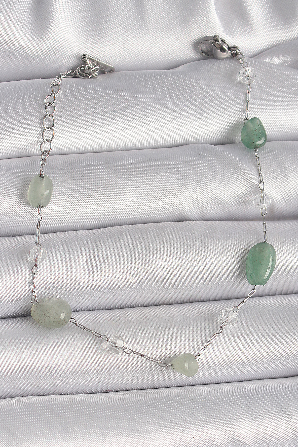 316L Çelik Gümüş Renk Zincir Yeşil Doğal Taş Kadın Bileklik - TJ-BB6594