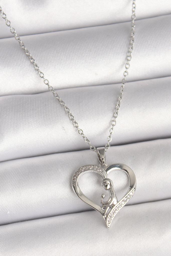 316L Çelik Gümüş Renk Zincir Zirkon Taş Detaylı Kalp Model Kadın Kolye - TJ-BKO9854