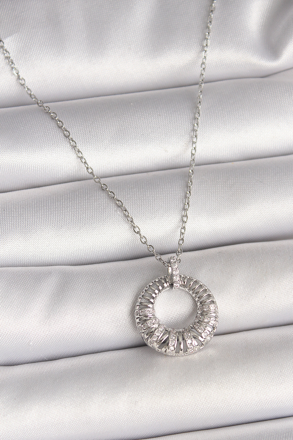 316L Çelik Gümüş Renk Zincir Zirkon Taş İşlemeli Daire Model Kadın Kolye - TJ-BKO9969