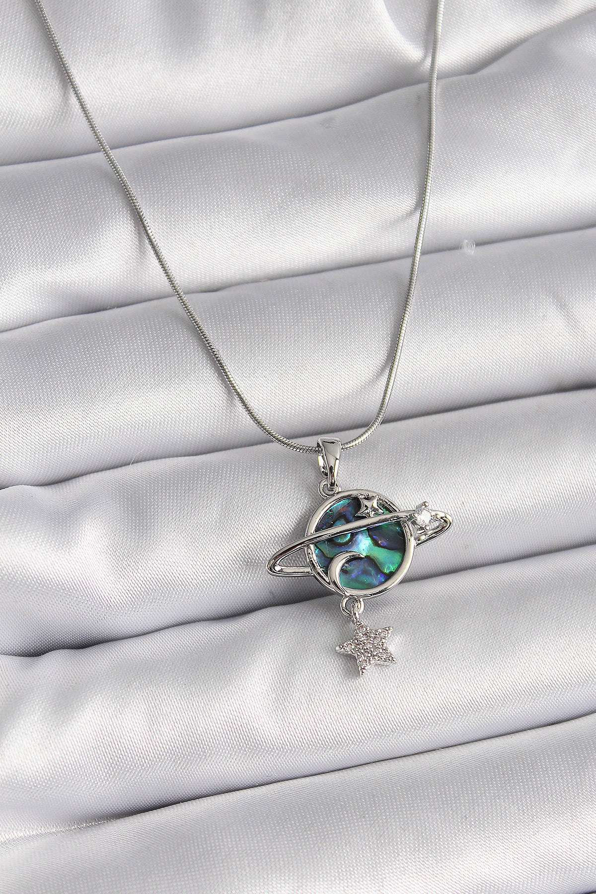 316L Çelik Gümüş Renk Zincir Zirkon Taşlı Gezegen Model Kadın Kolye - TJ-BKO9478
