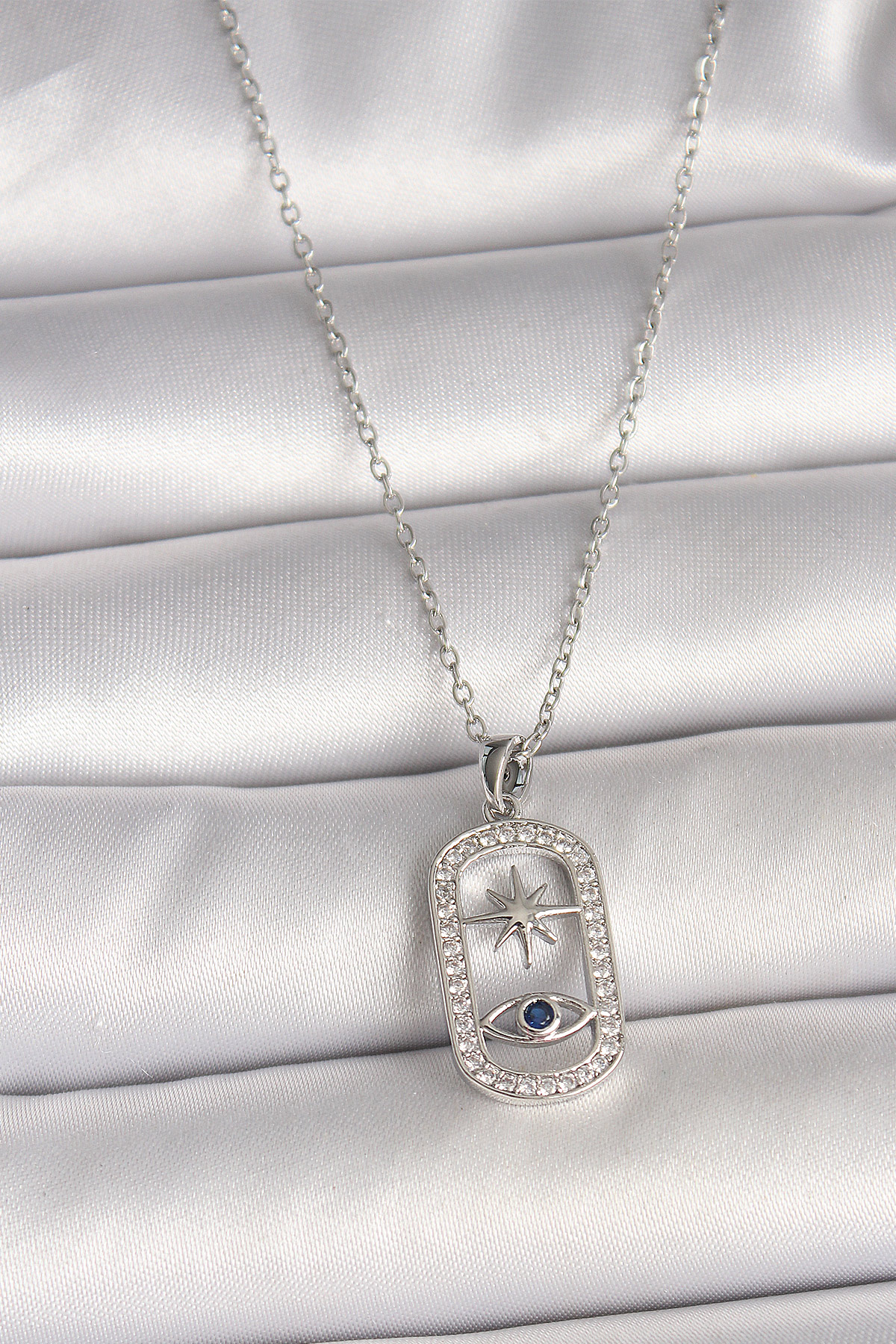 316L Çelik Gümüş Renk Zincir Zirkon Taşlı Göz Yıldız Model Kadın Kolye - TJ-BKO9985