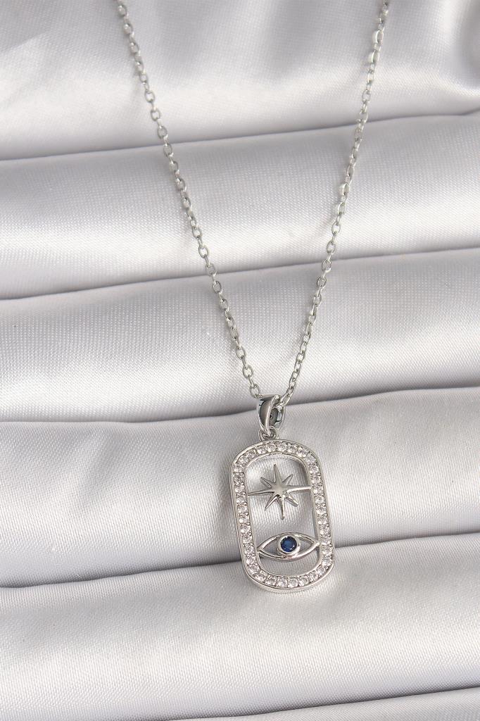 316L Çelik Gümüş Renk Zincir Zirkon Taşlı Göz Yıldız Model Kadın Kolye - BKO9985