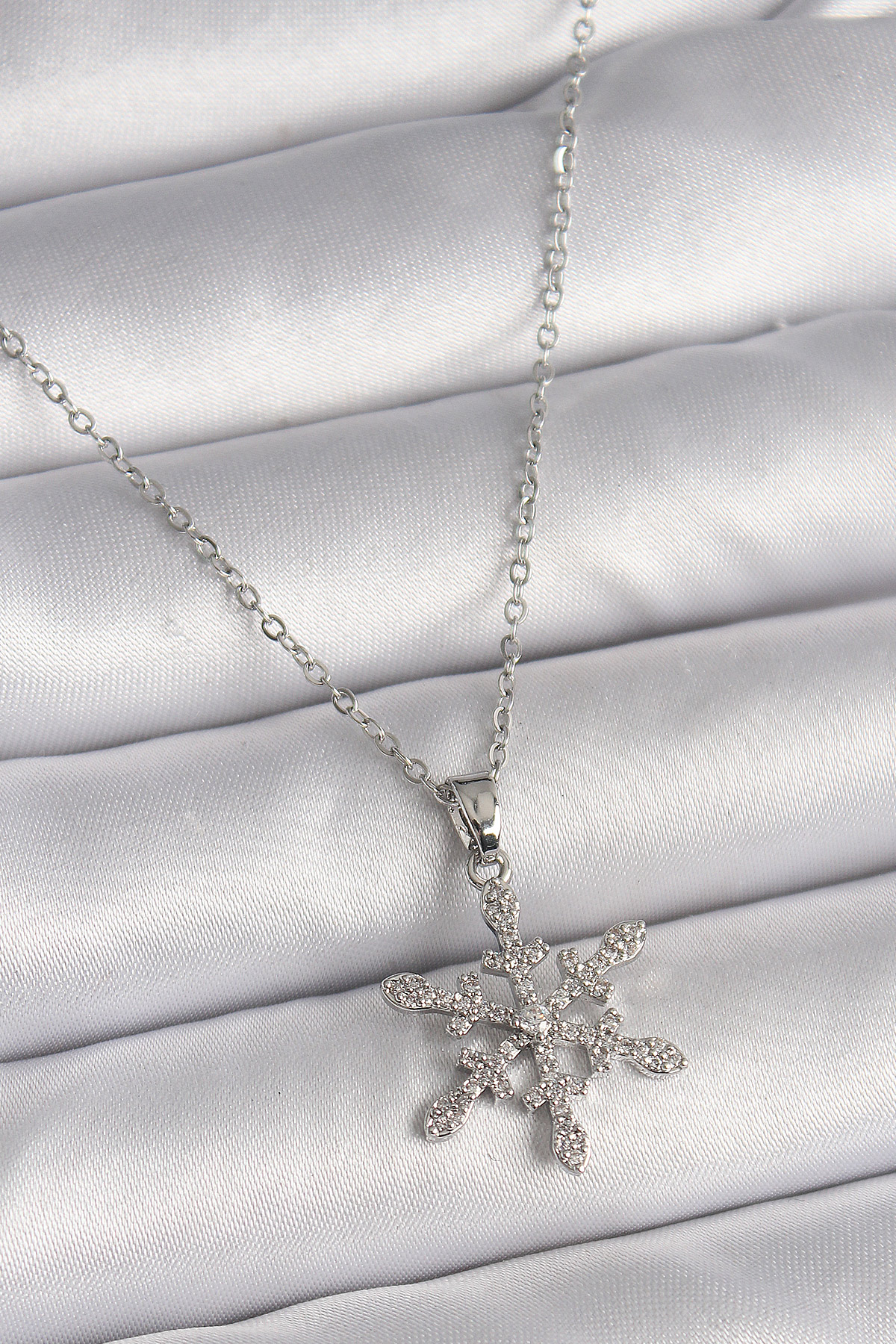 316L Çelik Gümüş Renk Zincir Zirkon Taşlı Kar Tanesi Model Kadın Kolye - TJ-BKO9716
