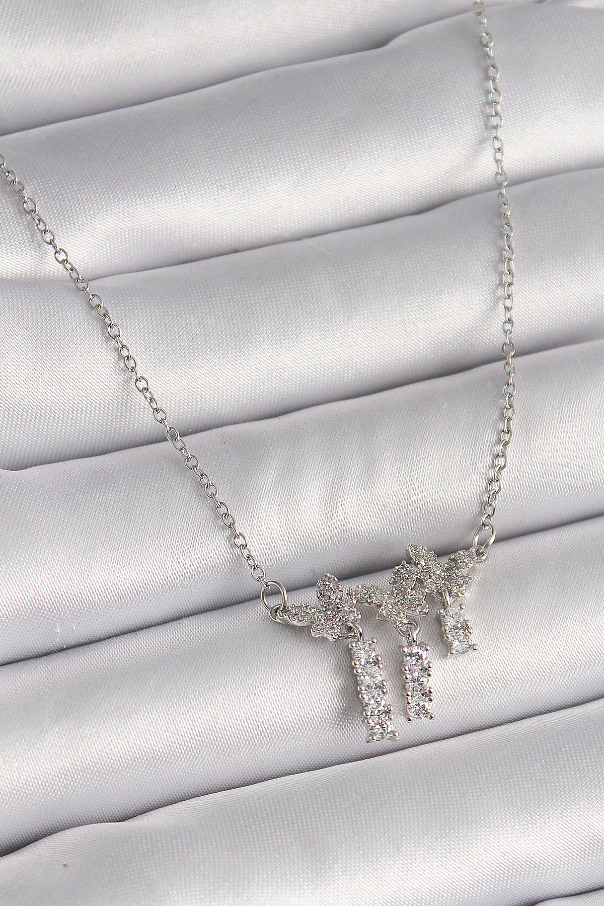 316L Çelik Gümüş Renk Zincir Zirkon Taşlı Kelebek Model Sallantı Detay Kadın Kolye - TJ-BKO9653