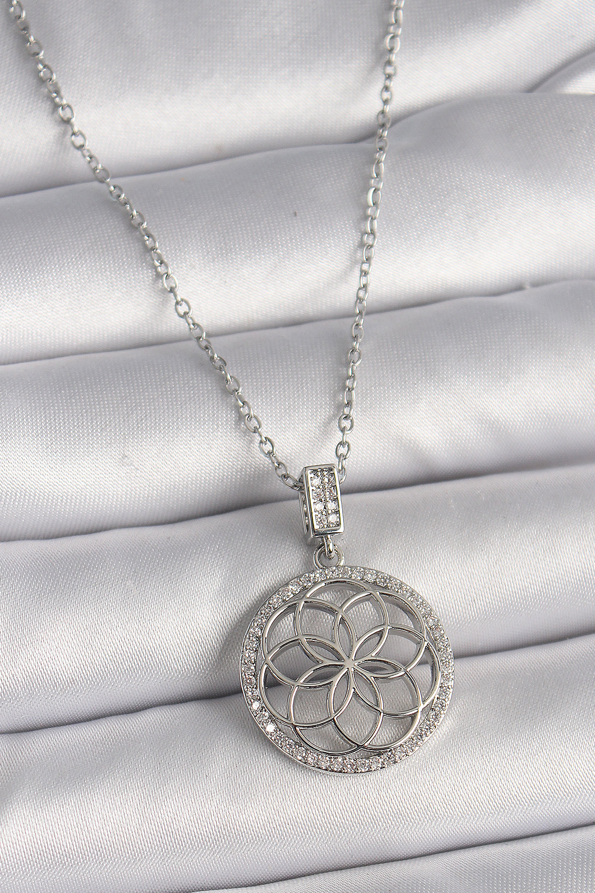 316L Çelik Gümüş Renk Zincir Zirkon Taşlı Lotus Model Kadın Kolye - TJ-BKO9731