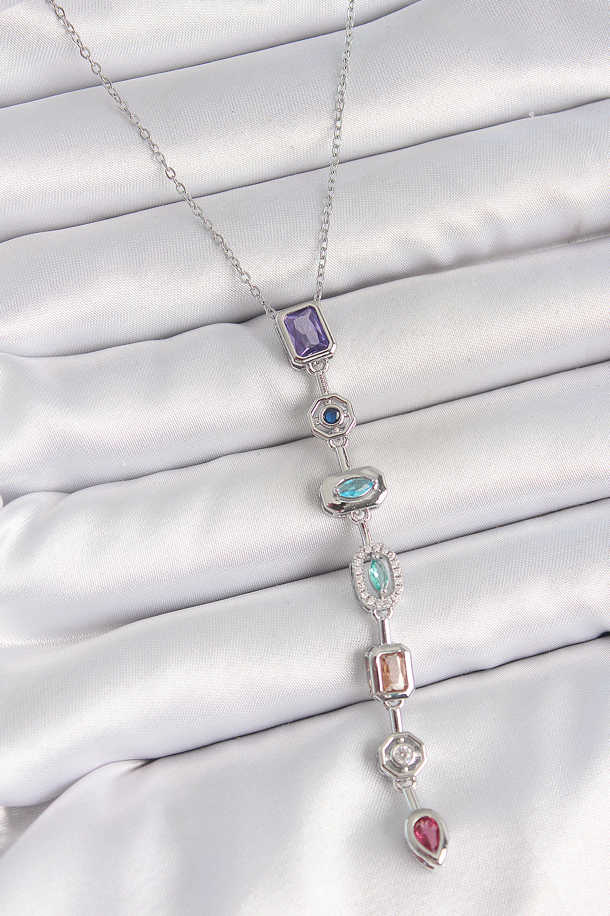 316L Çelik Gümüş Renk Zincir Zirkon Taşlı Y Model Dekolte Kadın Kolye - TJ-BKO10207