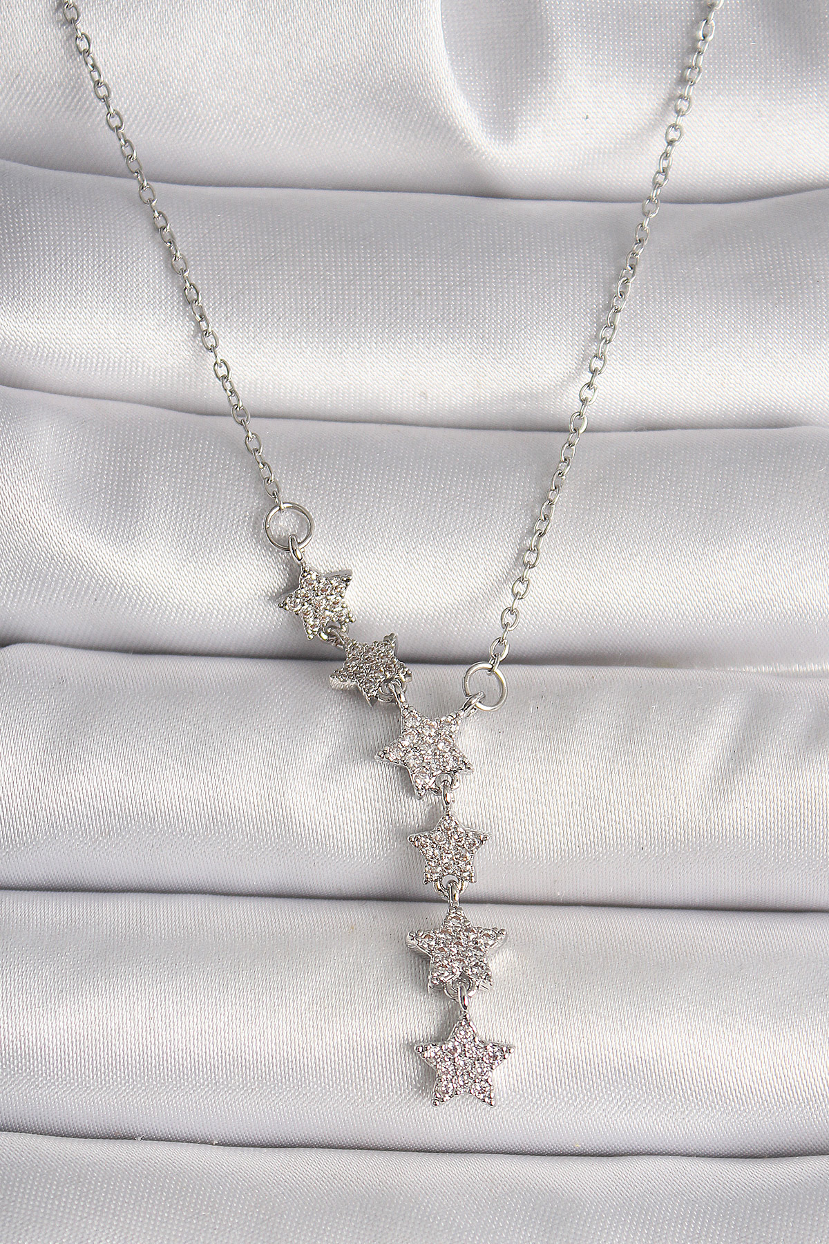316L Çelik Gümüş Renk Zincir Zirkon Taşlı Yıldız Model Kadın Kolye - TJ-BKO9904