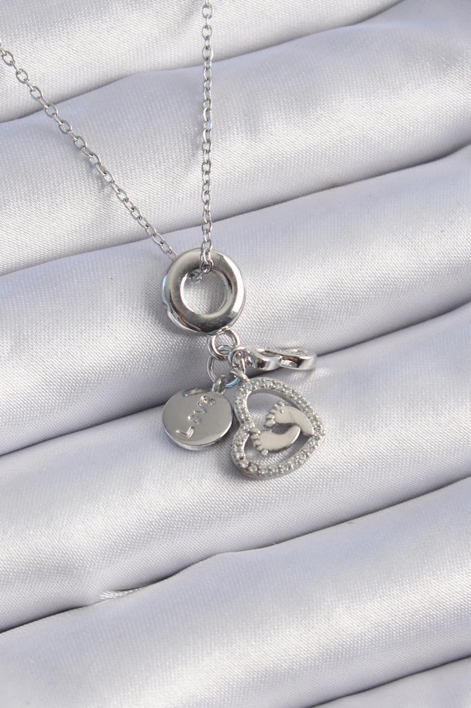 316L Çelik Gümüş Renk Zirkon Taş Detay Kalp Model Charm Kadın Kolye - TJ-BKO9305