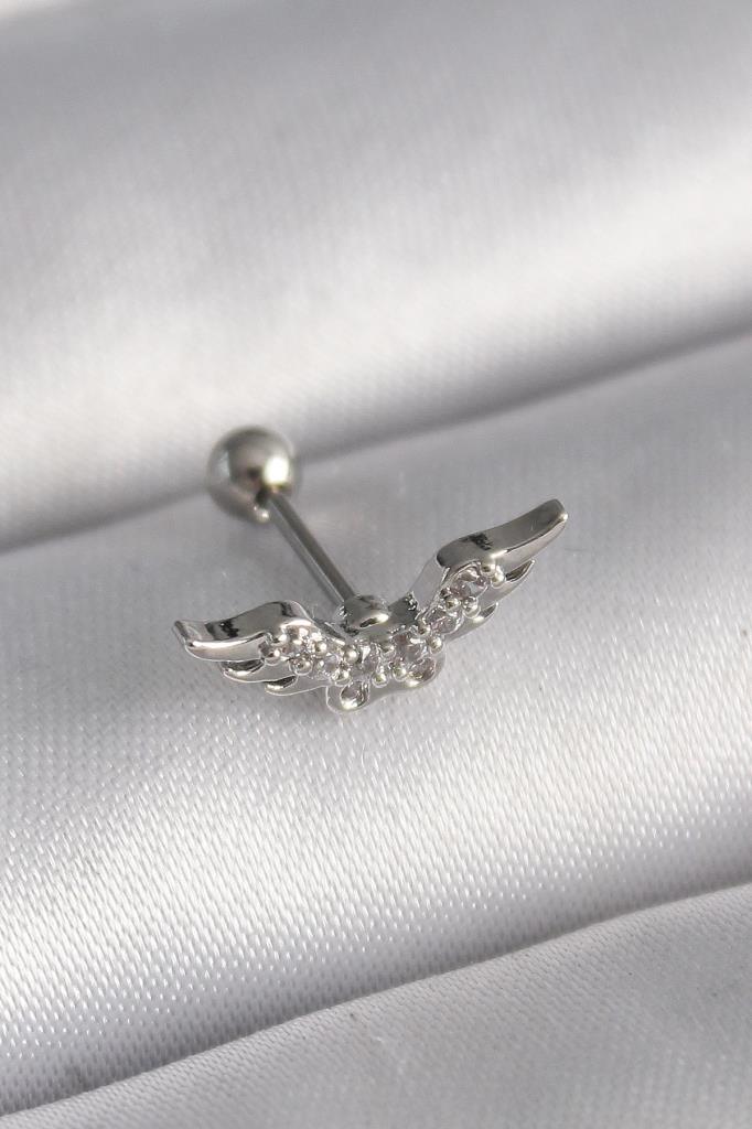 316L Çelik Gümüş Renk Zirkon Taş Detay Kanat Model Tragus Piercing - TJ-PR1291