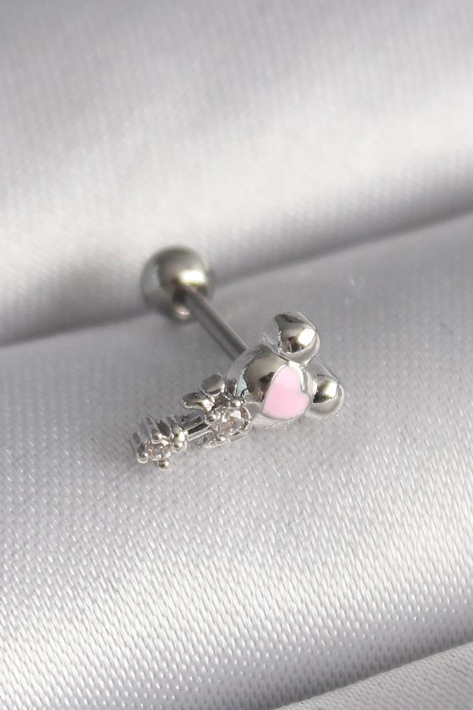 316L Çelik Gümüş Renk Zirkon Taş Detay Pembe Kalp İşleme Tragus Piercing - TJ-PR1281