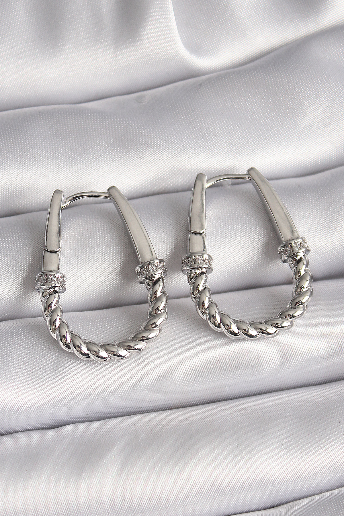 316L Çelik Gümüş Renk Zirkon Taş Detaylı Burma Halka Model Kadın Küpe - TJ-BKP9721