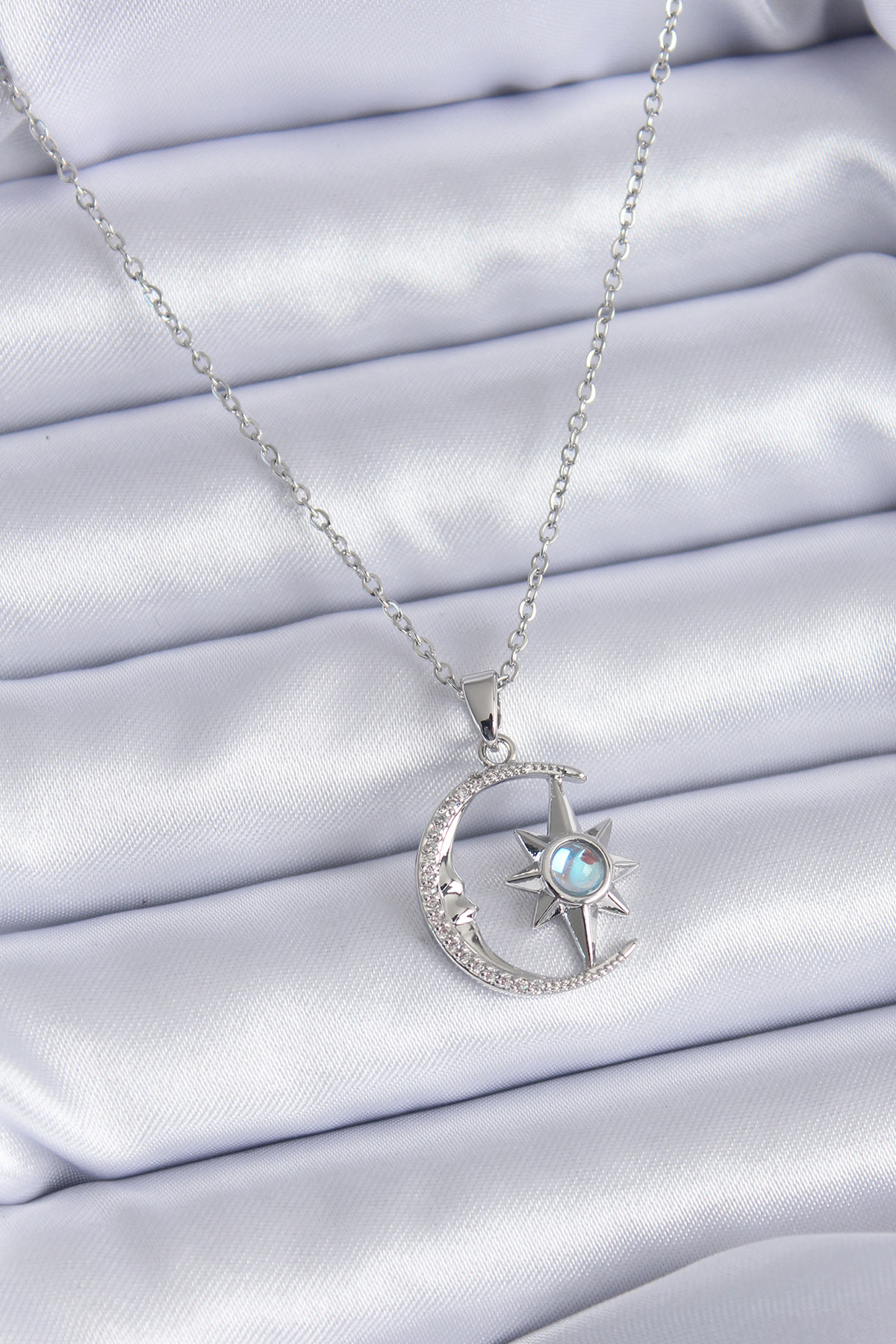 316L Çelik Gümüş Renk Zirkon Taşlı Ay Yıldız Model Kadın Kolye - TJ-BKO7689