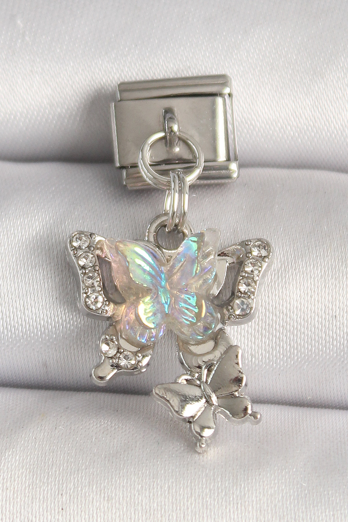 316L Çelik Gümüş Renk Zirkon Taşlı Beyaz Mineli Kelebek Model Kelebek Detay Nomination Charm - TJ-BC1329