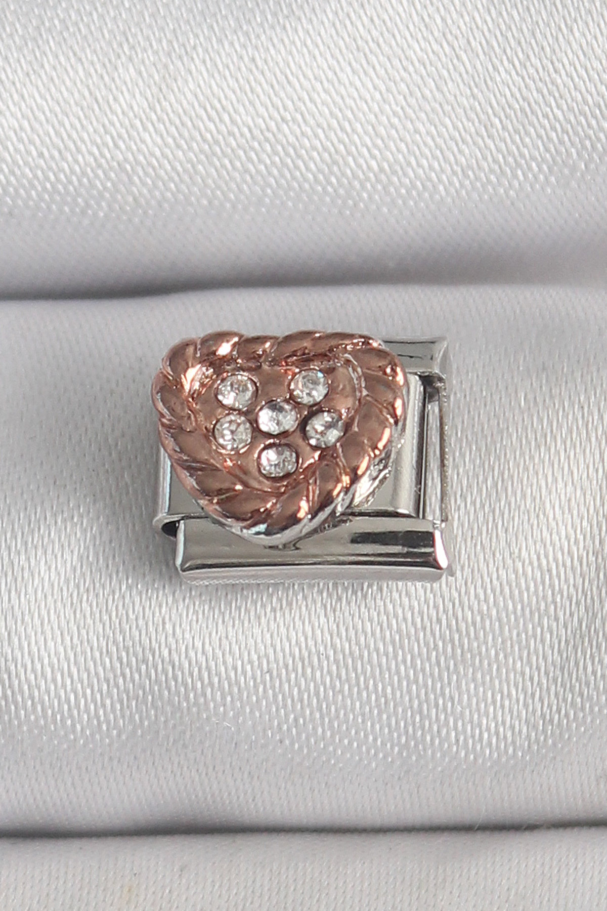 316L Çelik Gümüş Renk Zirkon Taşlı Bronz Kalp İşlemeli Nomination Charm - TJ-BC1393