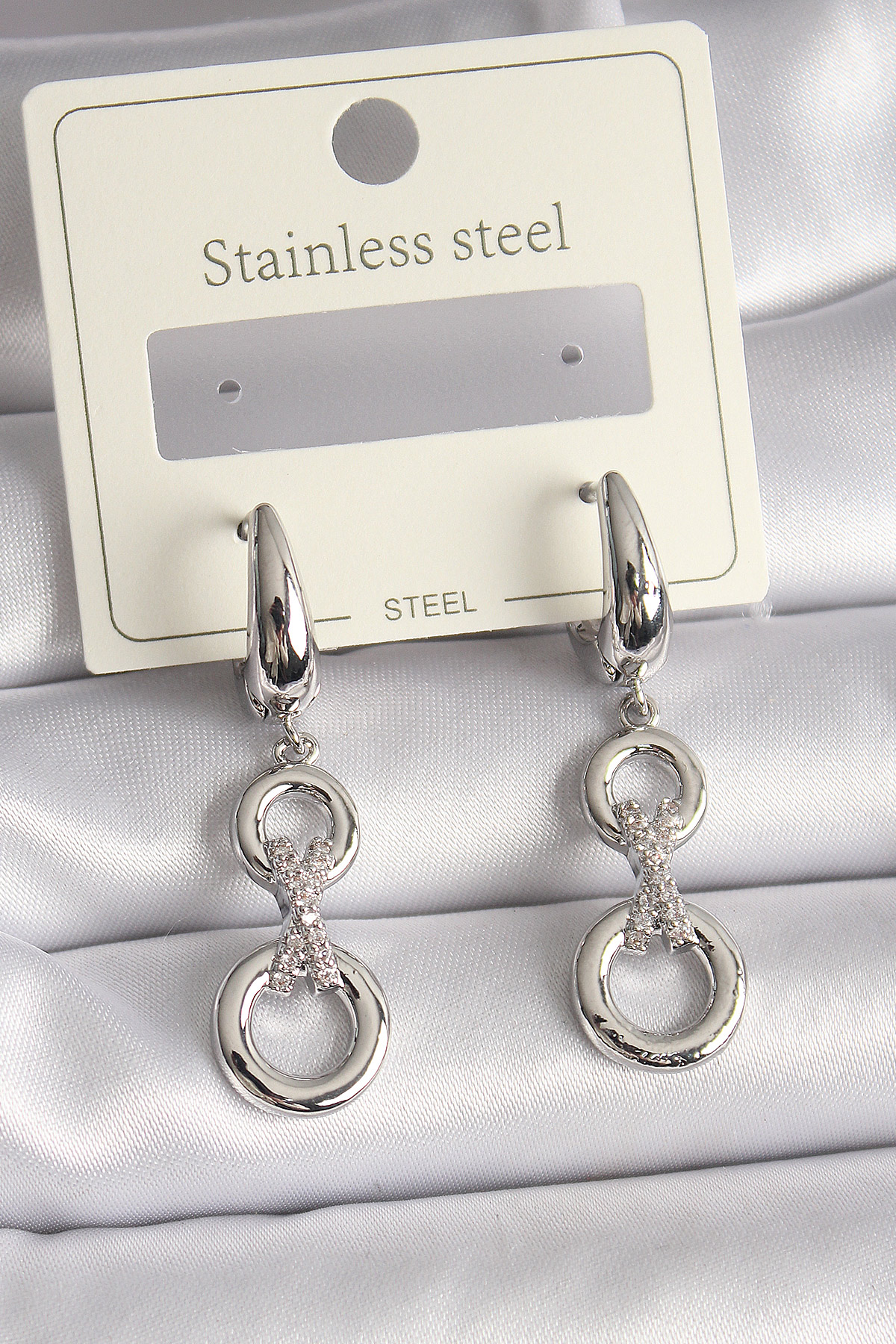 316L Çelik Gümüş Renk Zirkon Taşlı Daire Model Kadın Küpe - TJ-BKP9723