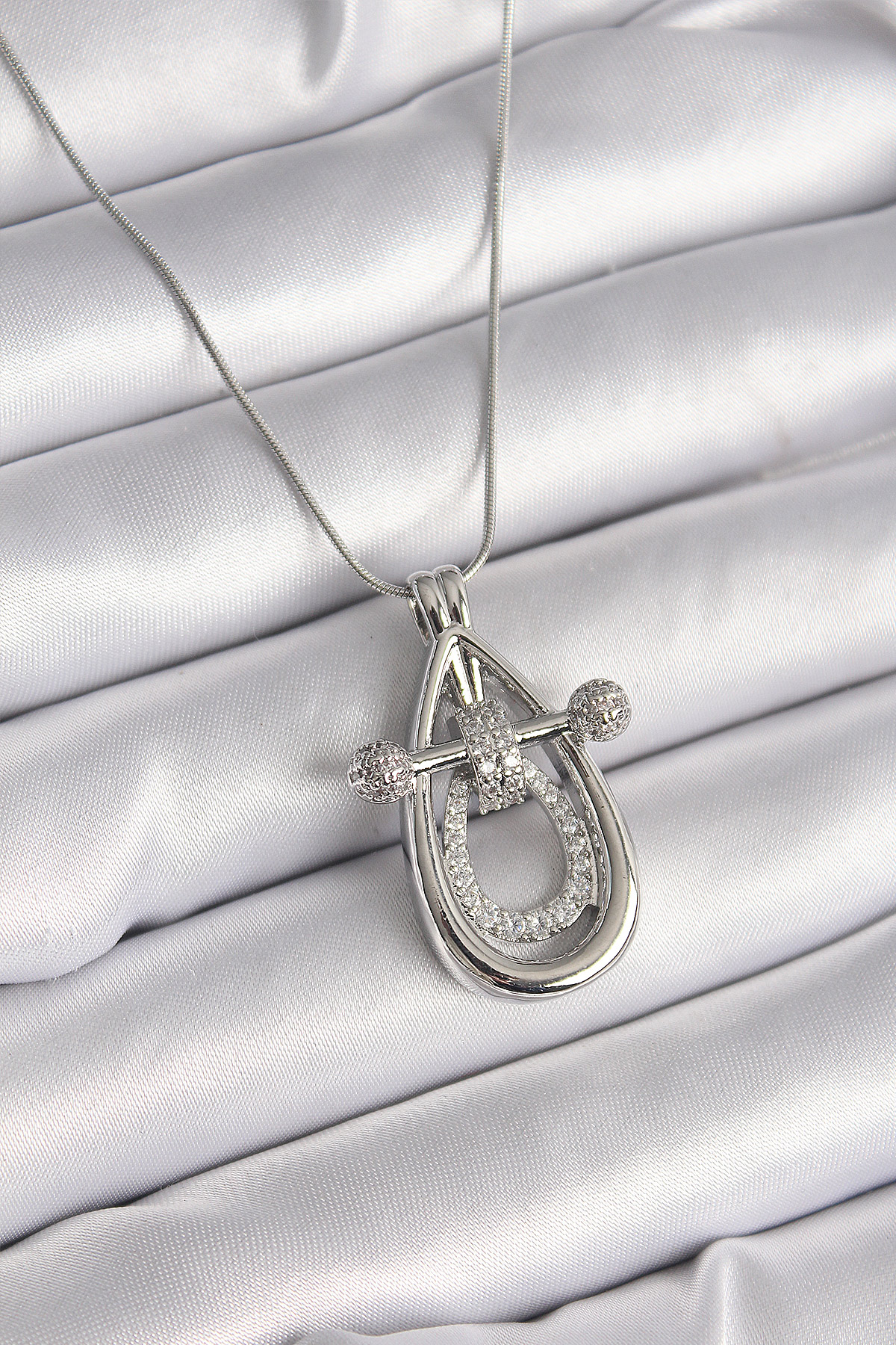 316L Çelik Gümüş Renk Zirkon Taşlı Damla Model Kadın Kolye - TJ-BKO9606
