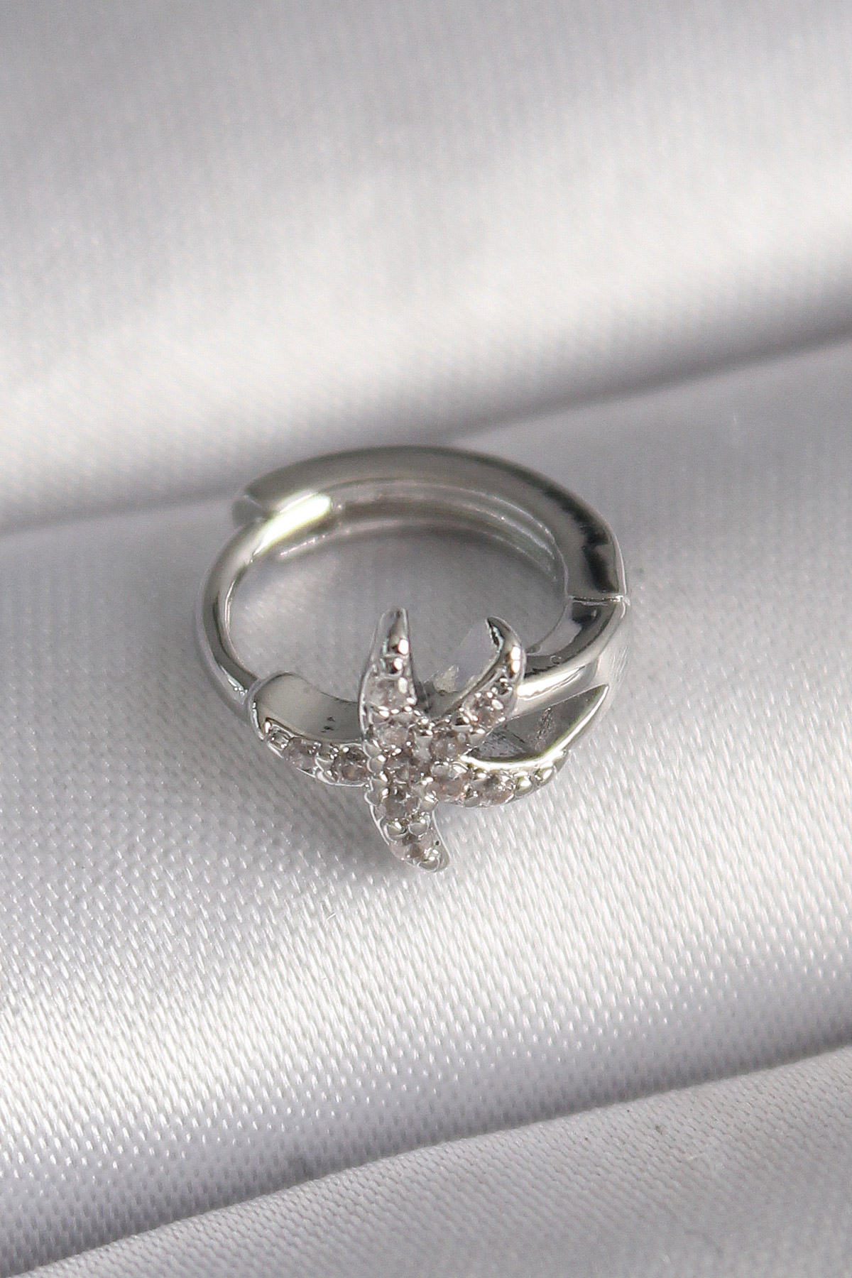 316L Çelik Gümüş Renk Zirkon Taşlı Deniz Yıldızı Model Tragus Piercing - TJ-PR1319