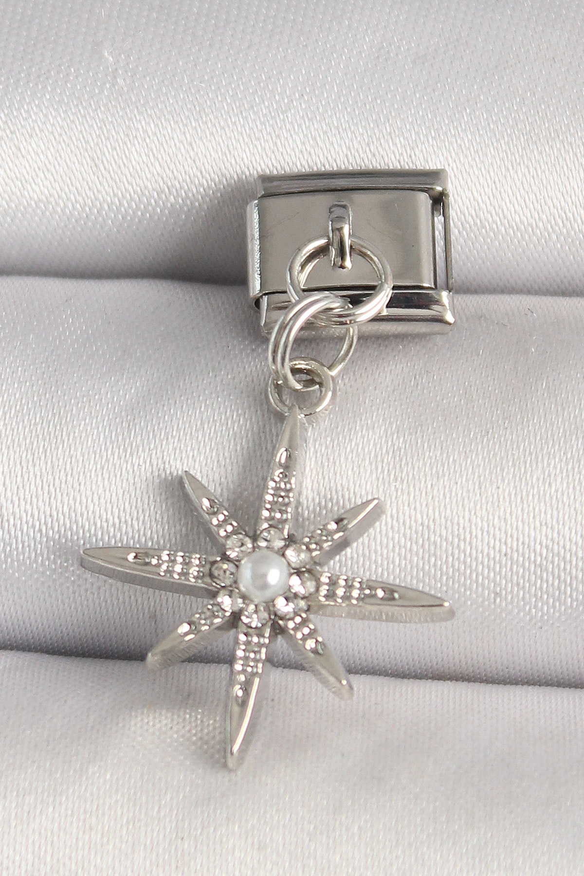 316L Çelik Gümüş Renk Zirkon Taşlı İnci Detay Yıldız Model Nomination Charm - TJ-BC1281