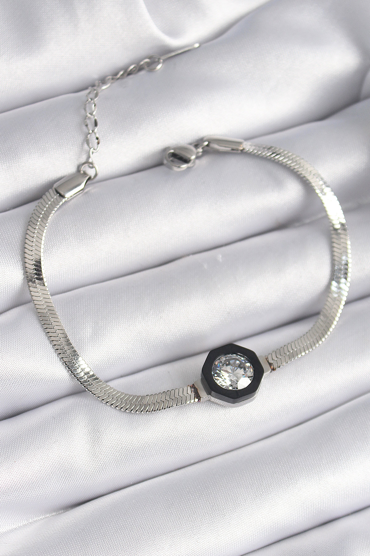 316L Çelik Gümüş Renk Zirkon Taşlı İtalyan Zincir Model Kadın Bileklik - TJ-BB6479
