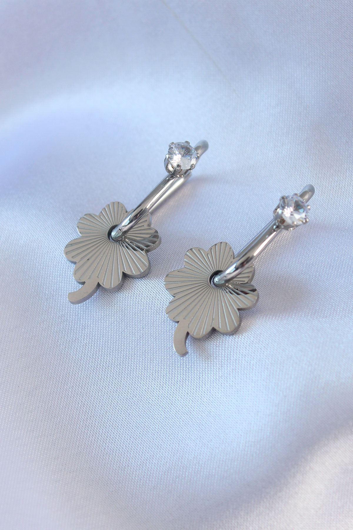 316L Çelik Gümüş Renk Zirkon Taşlı Kadın Göçmen Küpesi - TJ-BKP7539