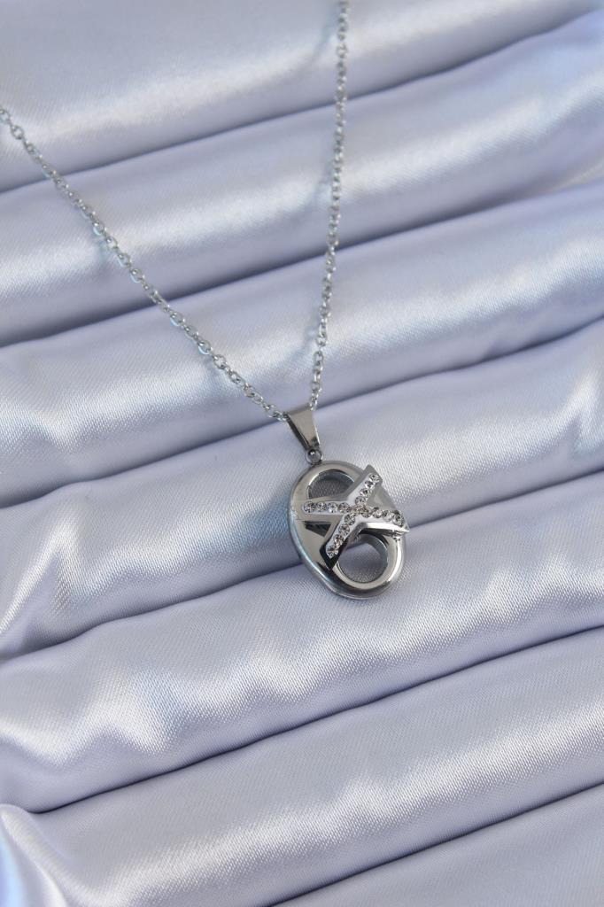 316L Çelik Gümüş Renk Zirkon Taşlı Kadın Kolye - TJ-BKO7634