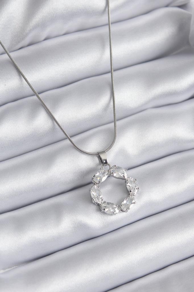 316L Çelik Gümüş Renk Zirkon Taşlı Kadın Kolye - TJ-BKO8137