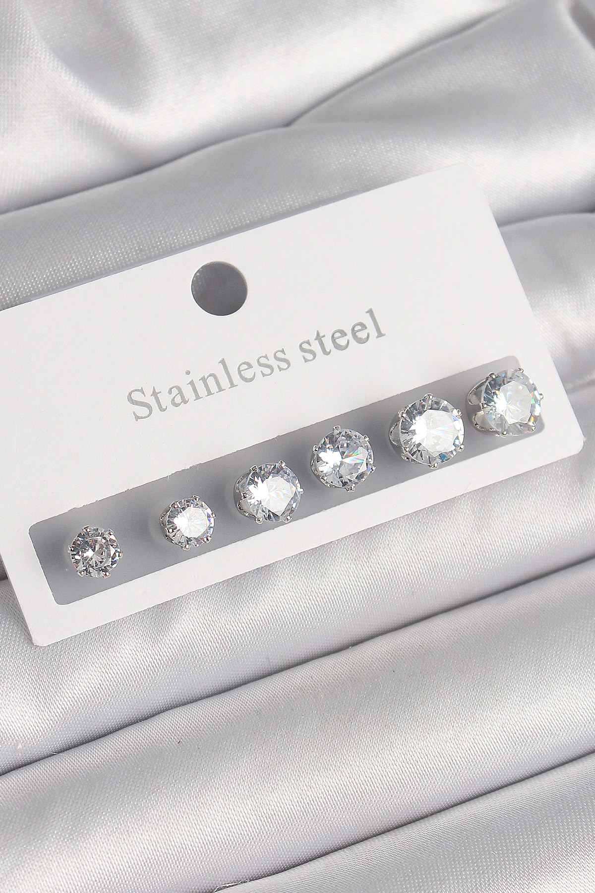 316L Çelik Gümüş Renk Zirkon Taşlı Kadın Küpe Seti - TJ-BKP10299