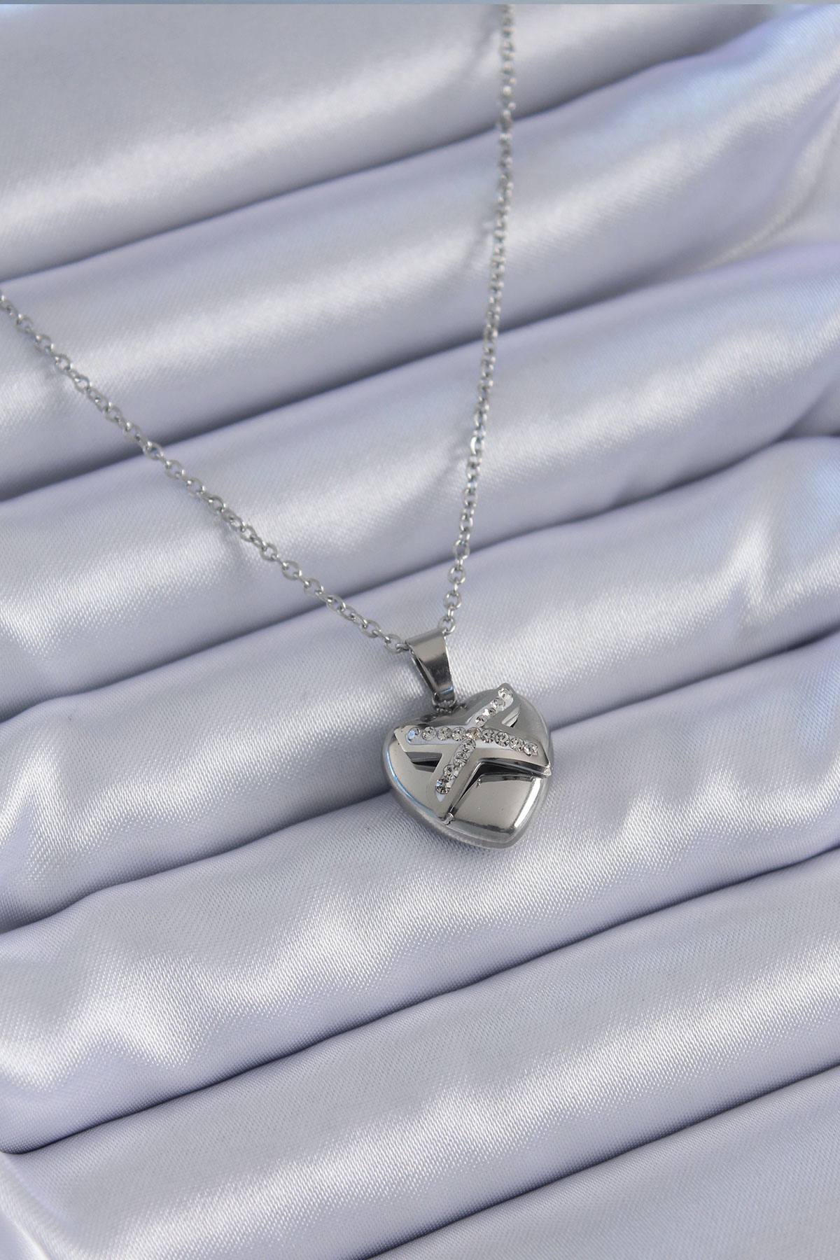 316L Çelik Gümüş Renk Zirkon Taşlı Kalp Model Kadın Kolye - TJ-BKO7627