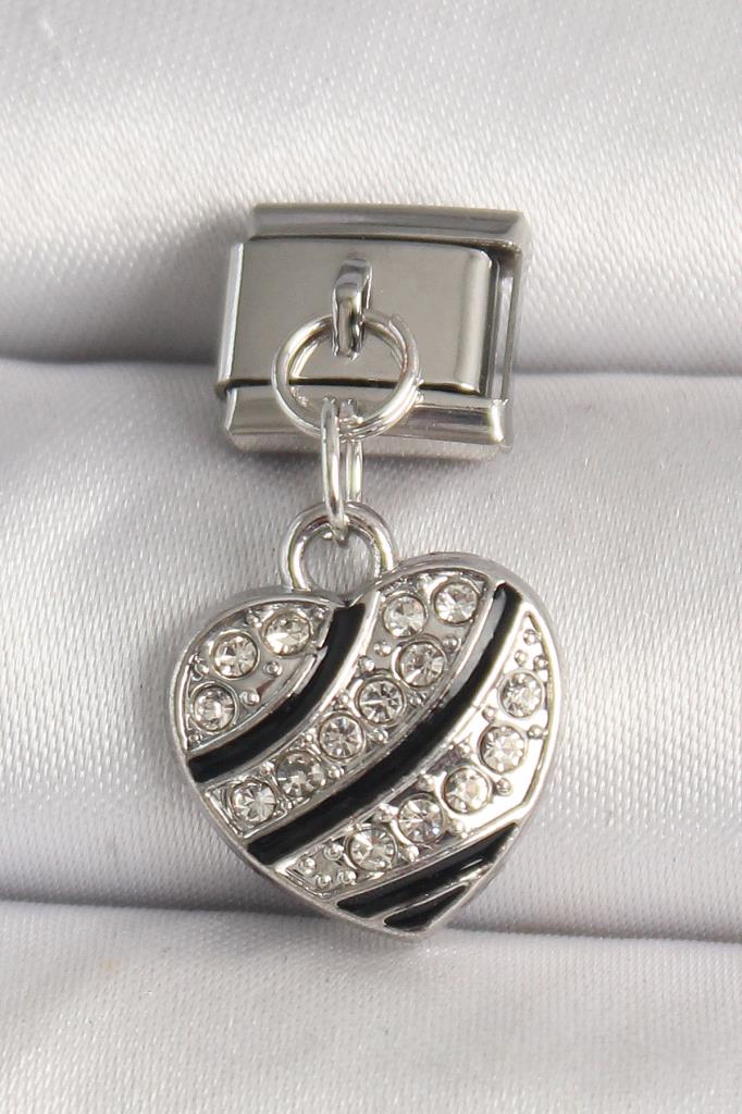 316L Çelik Gümüş Renk Zirkon Taşlı Kalp Model Nomination Charm - BC1316