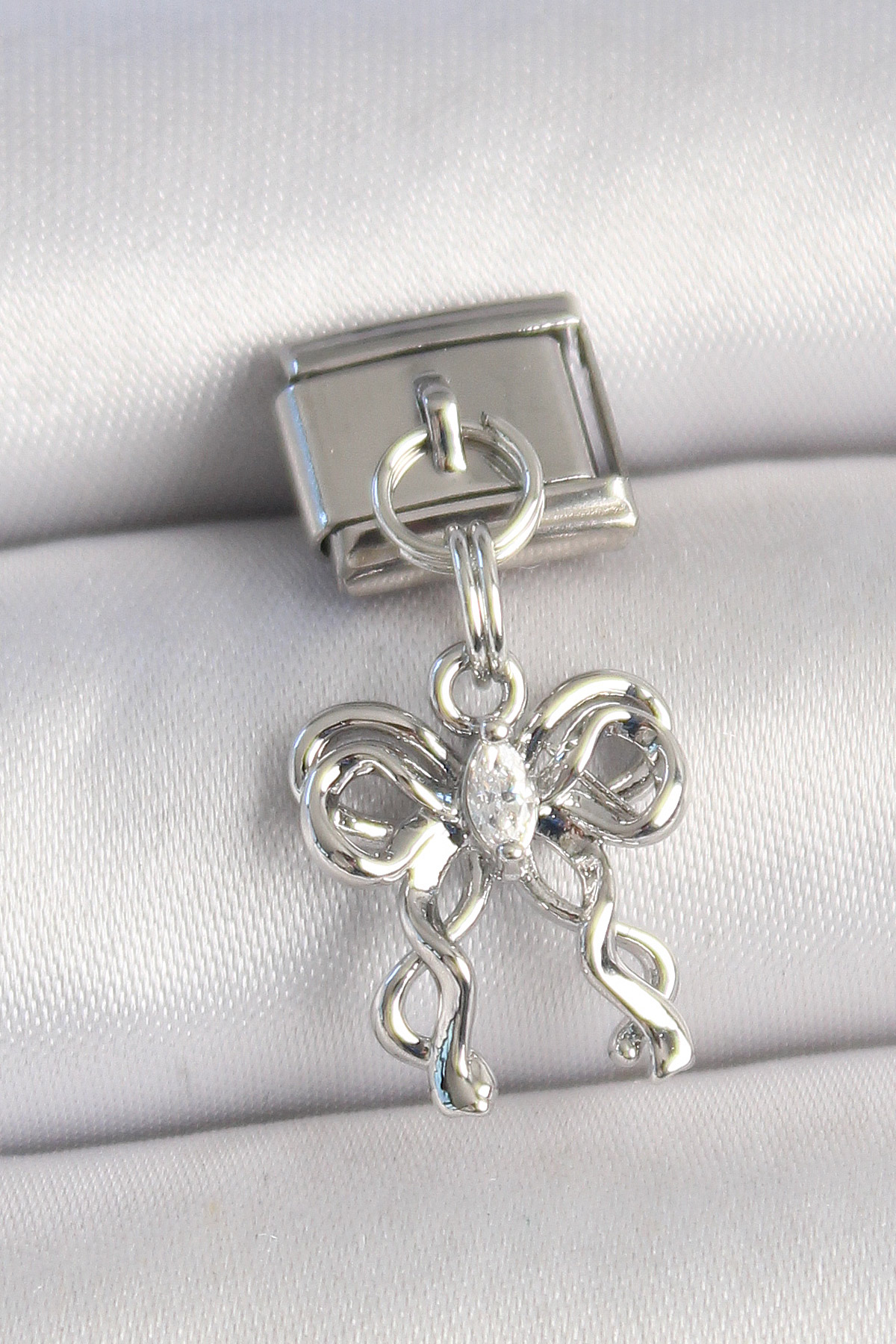 316L Çelik Gümüş Renk Zirkon Taşlı Kurdele Model Nomination Charm - TJ-BC1337