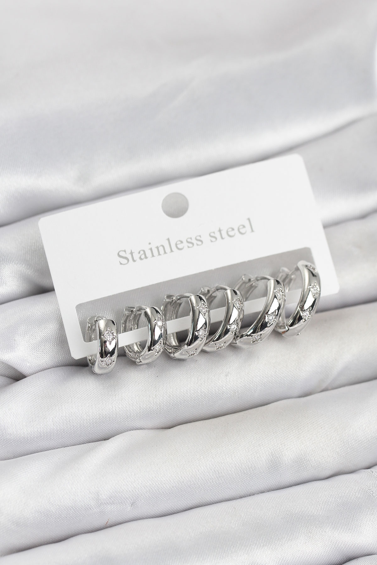 316L Çelik Gümüş Renk Zirkon Taşlı Kutup Yıldızı Model Halka Küpe Seti - TJ-BKP11531
