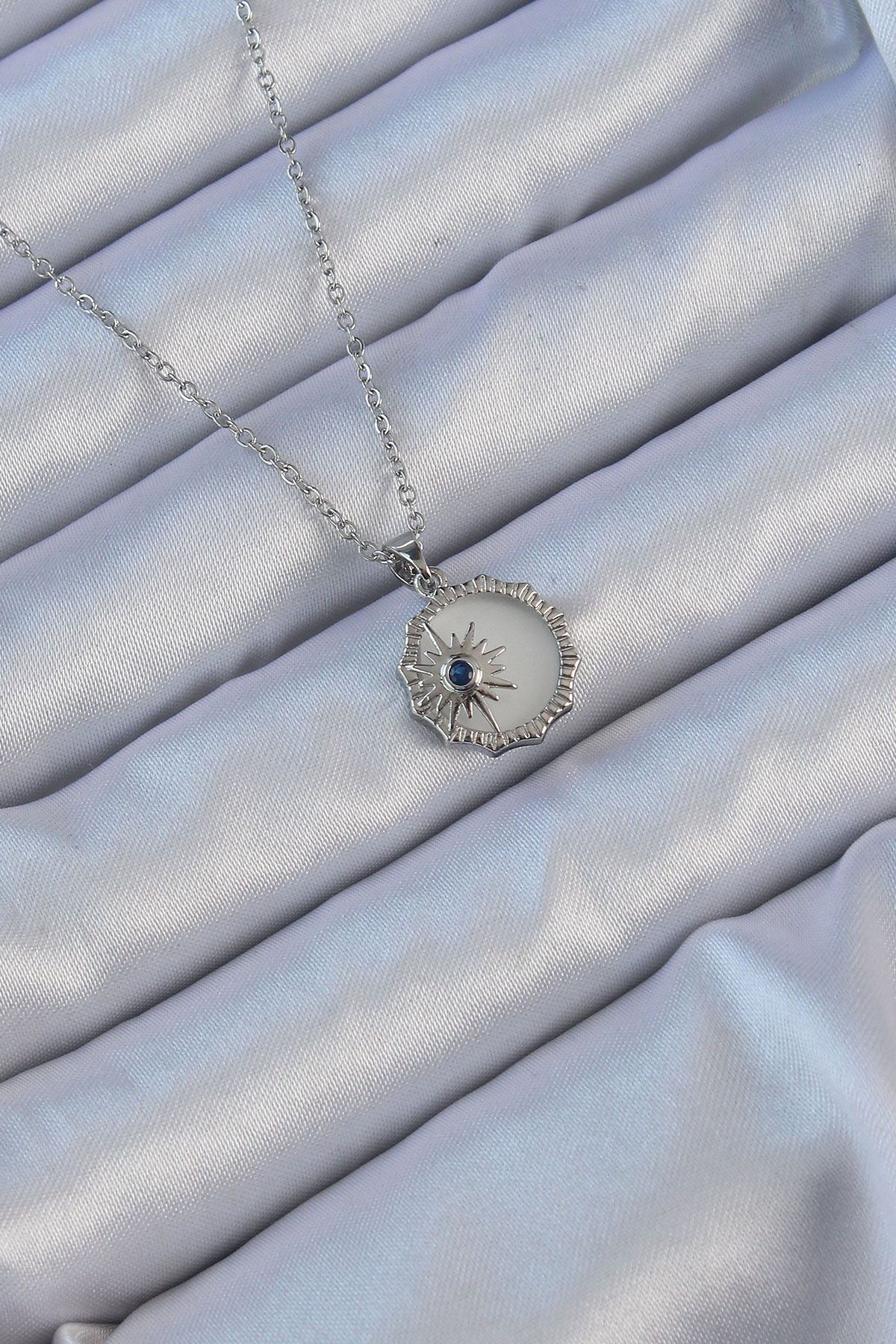 316L Çelik Gümüş Renk Zirkon Taşlı Mineli Kutup Yıldızı Kolye - TJ-BKO9148