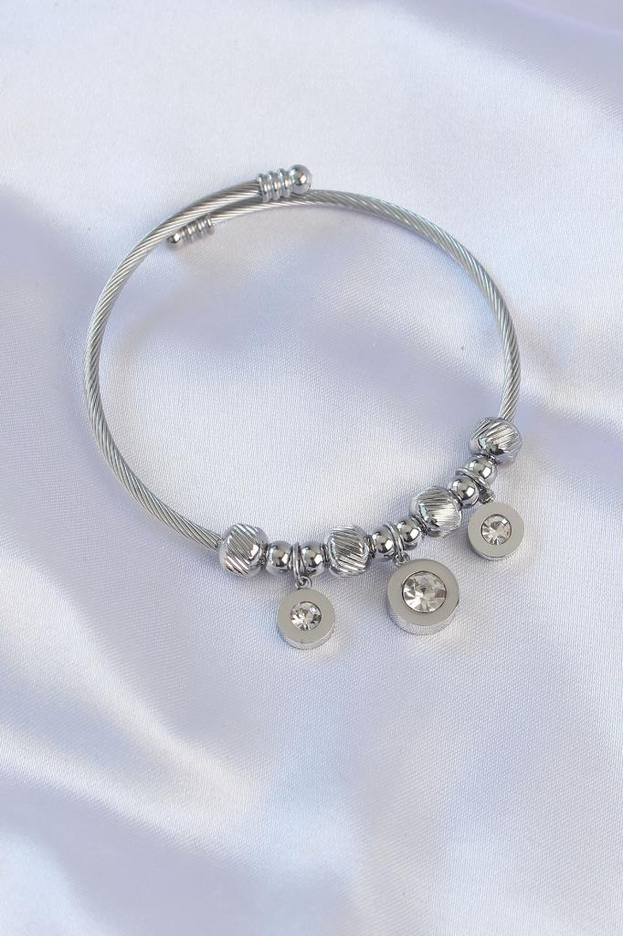 316L Çelik Gümüş Renk Zirkon Taşlı Model Charm Bileklik - TJ-BB6090