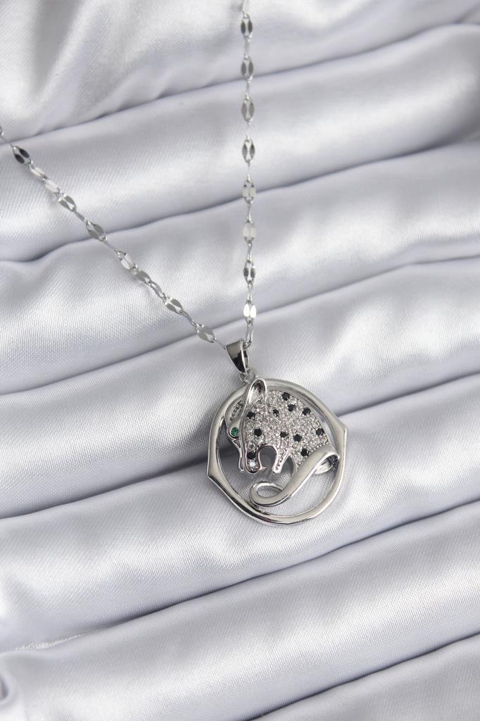 316L Çelik Gümüş Renk Zirkon Taşlı Puma Model Kadın Kolye - TJ-BKO8177