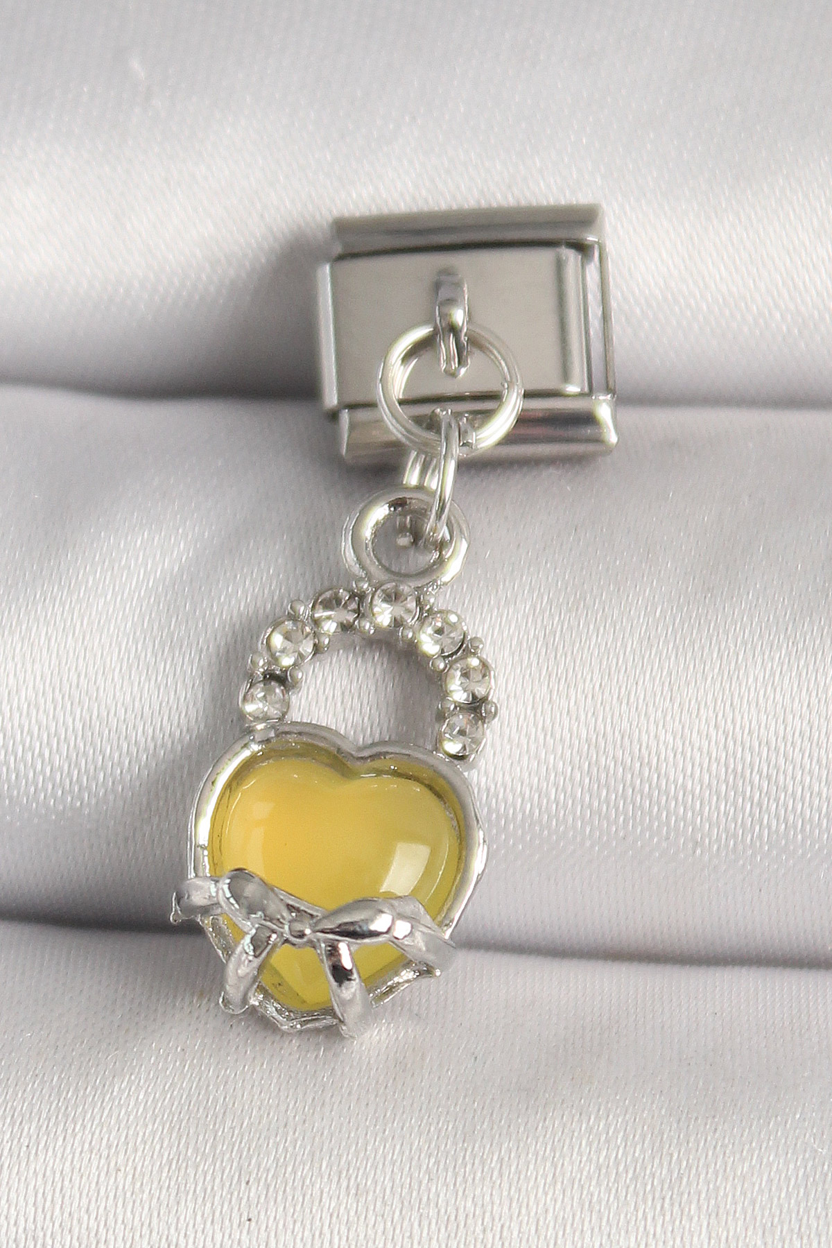 316L Çelik Gümüş Renk Zirkon Taşlı Sarı Kilit Kalp Model Nomination Charm - TJ-BC1311